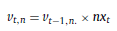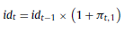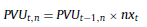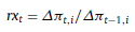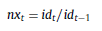 Donde id es el índice y π t,1 es la evolución en el nivel de precios para (t) y el activo (i). Conforme fue indicado, la inflación proyectada es una variable obtenida de los datos provenientes de la curva de rendimientos, y de operar las ecuaciones de PTI y PPC. El coeficiente (nx t ) surge de: