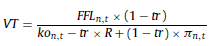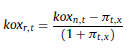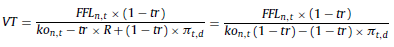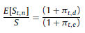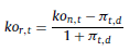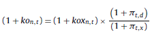 20 Esto es así ya que si en la ecuación 38 el denominador ko n,t – π n,t se sustituye por [kor,t + πt,d + kor,t × πt,d]− π t,d , operando se reduce a ko r,t (1 + π t,d ). Seguidamente, los coeficientes de capitalización a inflación esperada (1 + π t,d ) en el numerador y denominador se simplifican.