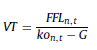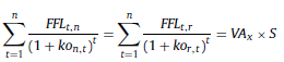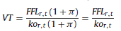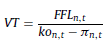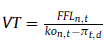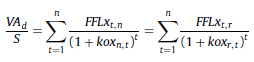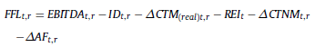 e) Flujos de fondos libres en moneda inicial (FFL t,r ): se obtiene a partir del flujo de fondos libre en moneda de cierre (ecuación 25), deflactado (ecuación 15):