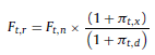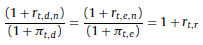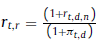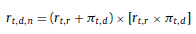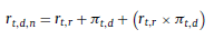 Despejando en función de la tasa nominal r t,d,n = (1 + π t,d )(1 + r t,r ) − 1, la tasa queda planteada de la siguiente manera: