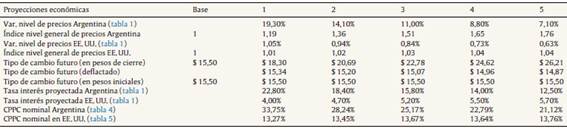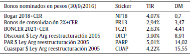 22 El rendimiento de los bonos indexados por el coeficiente de estabilización de referencia (CER) fue ajustado por una inflación proyectada del 17% para el primer año, conforme los datos oficiales plasmados en la ley de presupuesto nacional para el ejercicio 2017 (ver Ministerio de Hacienda y Finanzas Pública, Presidencia de la Nación Argentina http://www.economia.gob.ar/).