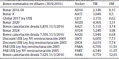 Tabla A3 Bonos soberanos nominados en dólares