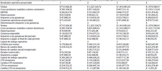 Para ello se deben emplear las ecuaciones 12,13 y 14 para elaborar el índice, coeficiente y transformación de magnitudes de nominales a reales. Seguidamente son estimados: el impuesto a las ganancias en términos reales, la inversión incremental real en capital de trabajo y el resultado del periodo por exposición a la inflación17.