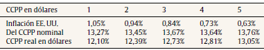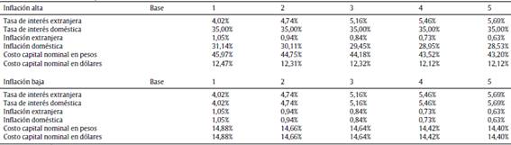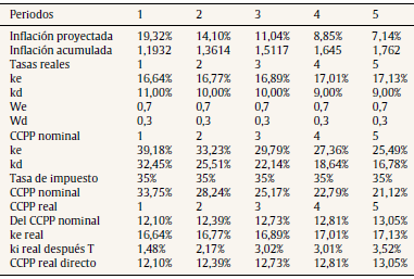 19 En este caso se verifica una sobreestimación del valor del CCPP y subestimación del valor de la firma, ya que el ahorro fiscal se calcula sobre intereses nominales (Modigliani y Cohn, 1984). La diferencia en la tasa de CCPP entre el procedimiento correcto e incorrecto es