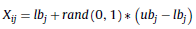 Donde X ij corresponde al parámetro j de la solución i en la población; lb j se refiere al límite inferior del parámetro j; ub j es el límite superior del parámetro j y rand (0, 1) corresponde a un número real aleatorio entre 0 y 1.