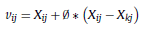 Donde v ij corresponde a una solución candidata para el parámetro j, con respecto a la vieja solución i; X ij es el parámetro j de la antigua solución i en la población; X kj ; se refiere al parámetro j de la solución vecina k; ∅ es un valor aleatorio entre 0 y 1 y k corresponde a la elección aleatoria de una fuente distinta a i.