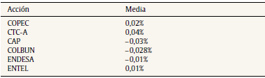 Tabla 1 Rendimiento promedio de la acción
