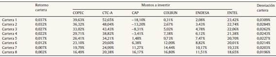 Tabla 3 Portafolios eficientes obtenidos del modelo GARCH