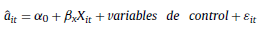 donde X it es una variable dummy que representa alternativamente la actividad exportadora de la empresa y si la empresa ha obtenido innovaciones tecnológicas (producto o proceso). En la estimación de la ecuación 8 también se incluyen variables de control de tamaño y año4.