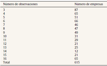 Tabla 3 Número de empresas clasificadas por el número de años consecutivos para los que la empresa tiene información disponible
