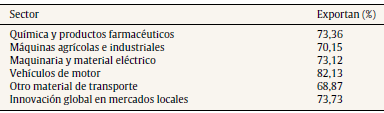 Tabla 4 Porcentaje de empresas que exportan del total de cada industria