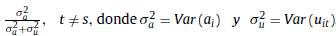 Como µi está en el error compuesto en cada periodo, los εit se correlacionan serialmente en cada periodo de tiempo, bajo los supuestos de efectos aleatorios, de tal manera que Cov (εit , εis) = 2