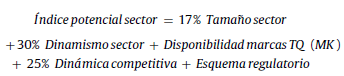 Una vez que se tienen los resultados tanto del índice de potencial país como del índice de potencial sector, se calcula el índice de priorización con la fórmula ya mencionada (ecuación 1). Al aplicar esta fórmula a todos los países se obtiene un índice de 0 a 1. Los países con mayor índice son los más atractivos para la búsqueda de oportunidades de expansión internacional para TQ; no obstante, independientemente de los resultados que arroje el ejercicio de priorización, la administración puede alterar el orden de priorización por consideraciones como: 1) posponer la entrada a un país de alto índice por considerarlo muy complejo; 2) entrar a un país con un modo de entrada de bajo impacto, como es la distribución indirecta, como herramienta para conocer el mercado y, posteriormente, proceder con un paso mayor, como la inversión directa.