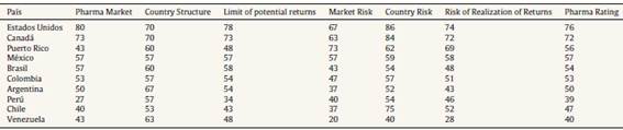 Es interesante resaltar que los resultados de este ejercicio no difieren radicalmente de otros rankings de atractividad de la industria farmacéutica realizados por compañías especializadas en estos ejercicios. Por ejemplo, el Business Monitor International (2008), en su ''Industry Business Environment Overview'' para el 2.° trimestre del 2008 presentó el siguiente ranking (tabla 10).
