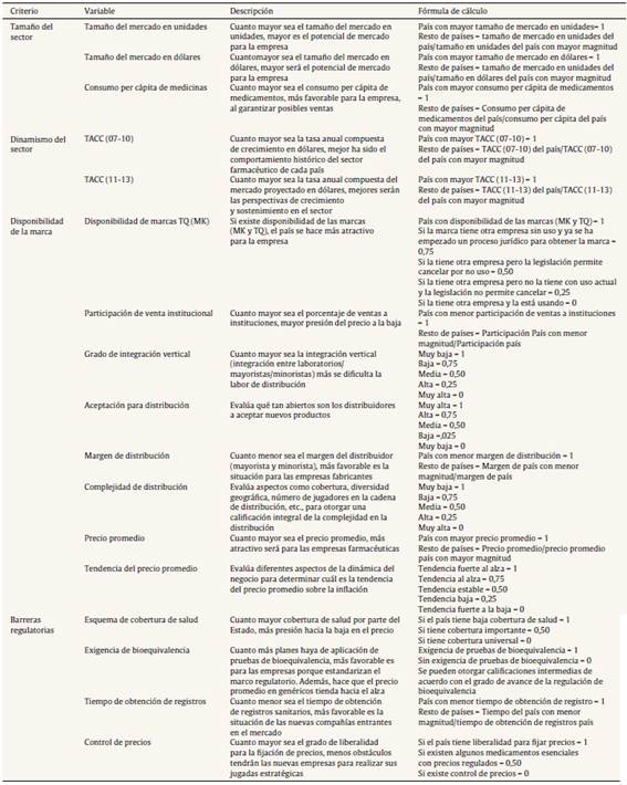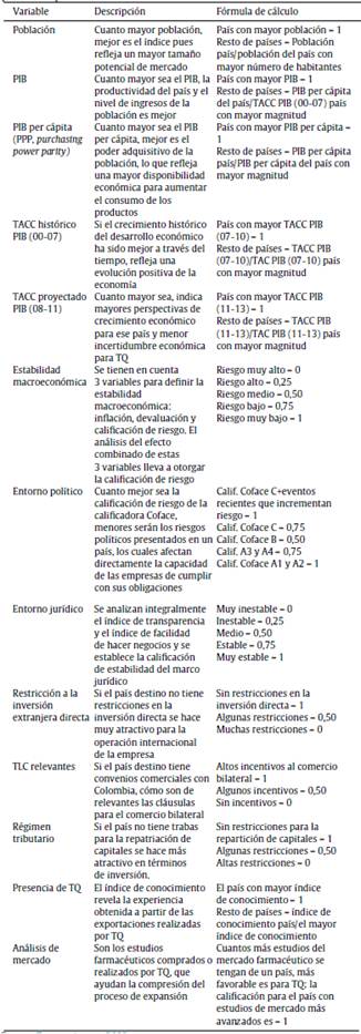 Las metodologías usadas en TQ combinan el análisis del entorno político, económico y regulatorio de cada país con el análisis del sector farmacéutico, para determinar los países más atractivos para la expansión internacional y así definir el enfoque geográfico de la estrategia de expansión internacional. Posteriormente, para los países prioritarios se realizó un análisis más profundo del sector farmacéutico para establecer los lineamientos en cuanto al portafolio de negocios que desarrollar en cada país. El modelo estuvo enfocado en el análisis del sector farmacéutico, pues se definió que esta sería la puerta de entrada a otros países diferentes a Colombia y que, una vez desarrollado un negocio farmacéutico, se podría iniciar la expansión hacia otros sectores en los que participa TQ en Colombia (cuidado personal, pañales, etc.). A continuación se describirá la metodología empleada por TQ para analizar la posibilidad de expandirse internacionalmente.