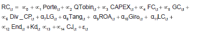 Neste sentido, o modelo utilizado será uma extensão do proposto por Almeida et al. (2004), conforme a Equação 1, por incluir as variáveis de Governança Corporativa (GC), Localização Geográfica (LG), capacidade de geração e retenção de renda (Giro do Ativo - GA e Return on Assets - ROA), endividamento (End), custo da dívida (Kd) e cobertura de juros (CJ).