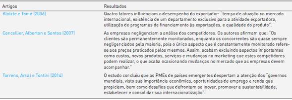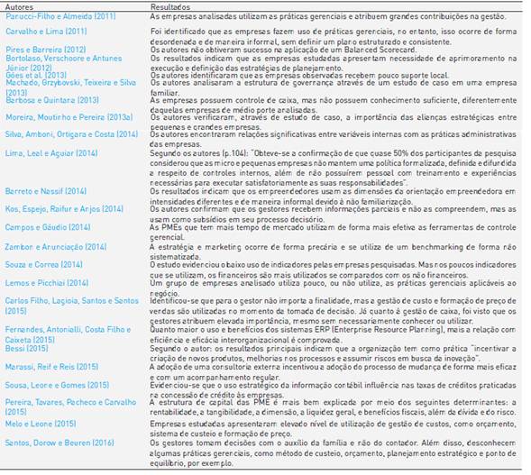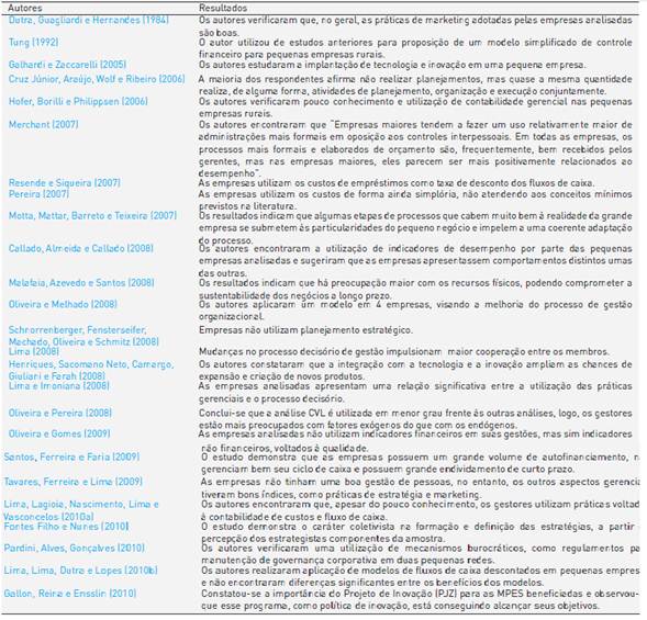 Adicionalmente, essa pesquisa tem como referência um trabalho semelhante no contexto internacional, o estudo de López e Hiebl (2015). Os autores realizaram uma revisão do conhecimento atual de gestão em pequenas e médias empresas (PMEs) com as principais revistas estrangeiras, sem considerar os estudos brasileiros, visto que quase to dos são publicados em português.