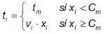 Cada vez que se invierte en una acción i, se deben tener en cuenta dos tipos de costos: el costo de compra de la acción, el cual es variable, y el costo total de transacción, que puede ser fijo o variable. En la BVC, así como en otros mercados financieros, se utiliza una estructura mixta para el costo de transacción. En la figura 2 se observa una representación del comportamiento de los costos de transacción con base en la estructura real actual de algunos comisionistas de la BVC. Para cualquier inversión, el costo de transacción debe ser mayor que un valor fijo t m. Sin embargo, para inversiones superiores a cierto monto C m , toma la forma v i • x i, donde v i representa una comisión en porcentaje para una inversión x i en la acción i. Así, el costo de transacción t i puede ser expresado como el máximo entre ambos: t i = max {t m ,v i •x i}.