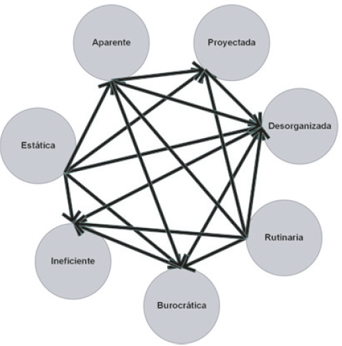 En la tabla 4 se presentan los resultados de la dimensión organizacional, los cuales muestran que la organización es percibida en su mayoría como desorganizada y, en segundo lugar, y con igual ponderación, los trabajadores consideran que es una organización estrella y estática. Al igual que el diagnóstico de la dimensión individual, se debe destacar que la percepción de la empresa como una organización estrella no implica un problema a la organización, al menos desde el punto de vista de la gestión del cambio, por lo cual no es considerada en el análisis multicriterio ELECTRE.