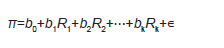 Donde, π é uma medida de desempenho, R é uma medida de recursos com n = k e ε é um termo de erro.