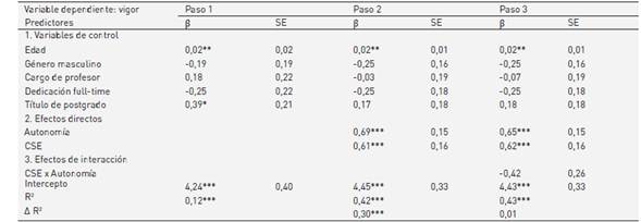 Tabla 2 Efectos de las CSE en la relación entre autonomía y vigor