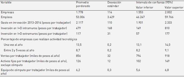 En México, una base de datos que ofrece información valiosa sobre los presupuestos destinados a I+D y a innovación es la Encuesta Nacional sobre Productividad y Competitividad de las Micro, Pequeñas y Medianas Empresas de 2015 (ENAPROCE). La encuesta se conforma de 12 capítulos, entre los cuales se incluye el de ciencia, tecnología e innovación. El objetivo de la ENAPROCE es generar información nacional sobre las habilidades gerenciales y de otras variables de la operación de las empresas en 2014. El levantamiento de la información se realizó sobre 26.997 empresas utilizando como marco de referencia el directorio de los censos económicos de 2014. Adicionalmente, se consideraron como pequeñas y medianas empresas a aquellas con personal entre 11 y 100 empleados en los sectores comercio y servicios y de 11 a 250 en las manufacturas (INEGI, 2015).