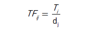 The weight of terms or words identified is formulated by the relationship between the frequency of occurrence of a term (TF) and the inverse frequency of the document containing the term (IDF). TF is the sum of all appearances of a term for each document (relative occurrence frequency), while the IDF factor of a term is inversely proportional to the number of documents in which that term appears, thus seeking to highlight non-generic terms (words less used in documents). Below there are the equations for factors calculation.
