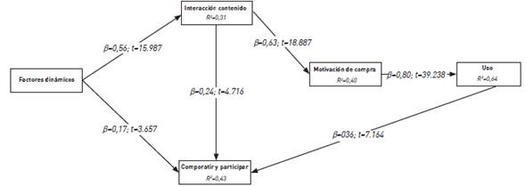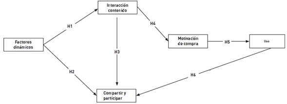 | Interacción contenido | Compartir y participar | Factores dinámicos | Motivación de compra | Uso | |