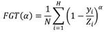 En este caso, la medida específica de pobreza está en función del número total de individuos (N), del ingreso del individuo (y i ), del umbral de pobreza o línea de pobreza (Z i ), del número de pobres H (personas con ingresos iguales o inferiores a Z i ) y del parámetro α que define el tipo de indicador FGT. Cuando α = 0, el indicador es equivalente a la proporción de pobres o tasa de incidencia. Cuando α = 1, el indicador es conocido como brecha de la pobreza y tiene en cuenta, además de la proporción de pobres, las distancias de los ingresos de los individuos pobres a su correspondiente línea de pobreza. Cuando α = 2 se denomina severidad de la pobreza y tiene en cuenta, además de la distancia entre el ingreso observado y la línea de pobreza, una mayor ponderación de los individuos de menor ingreso dentro de los pobres.
