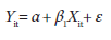 Onde Y é a variável dependente ou regressando; X é a variável independente ou regressor; α é o intercepto ou constante do modelo; ϐ é o coeficiente angular do modelo; ε é o erro do modelo; e it é a informação da empresa “i” no período “t”.
