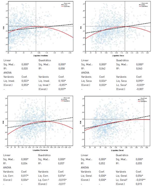 Figura 2 Influência da folga financeira (índices de liquidez) no ROA de empresas industriais Mexicanas listadas na BMV entre 1996 e 2014