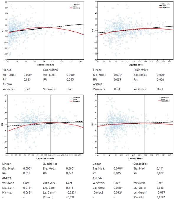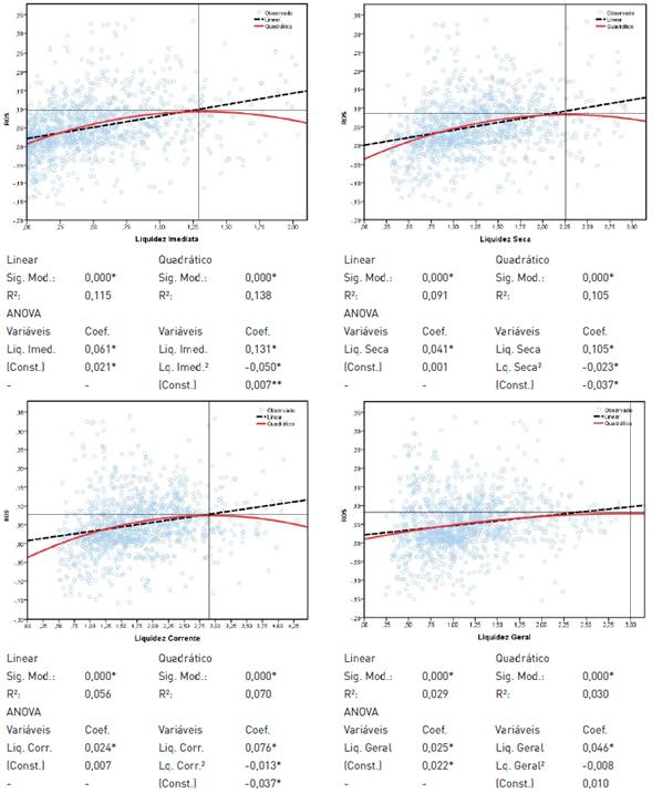 Figura 6 Influência da folga financeira (índices de liquidez) no ROS de empresas industriais Mexicanas listadas na BMV entre 1996 e 2014