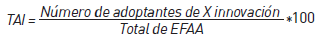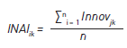 Donde INAIik es el índice de adopción de innovaciones del i-ésimo empresario en la k-ésima categoría; Innovjk es la presencia de la j-ésima categoría y n es el número total de innovaciones en la k-ésima categoría.
