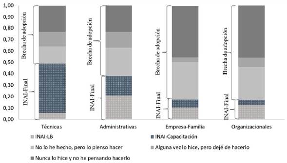Figura 6 INAI-Final y brecha de adopción (BA) por categoría de innovación.