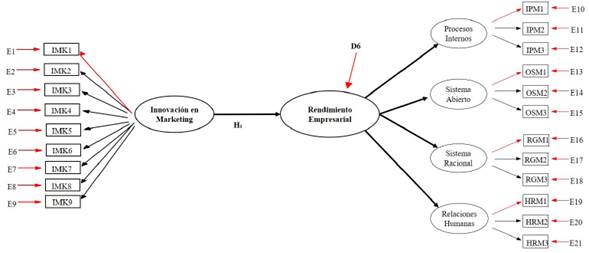 H1: a un mayor nivel de innovación en marketing, se corresponde un mayor performance de las pymes del sector industrial en Guanajuato, México.