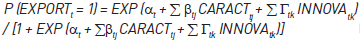 Para contrastar las hipótesis de investigación, se utilizaron dos modelos logit. Ambos modelos tienen como variable dependiente si la empresa es exportadora o no. El modelo 1 utiliza como variables explicativas diversas características de la empresa13 y los tipos de innovaciones realizadas. El modelo 2 presenta las mismas variables que describen las características de las firmas del modelo 1, pero incorpora variables referidas a las diferentes actividades de innovación que estas pueden llevar a cabo.