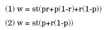 Como señala Boole(pág.97) a partir de la ecuación anterior se puede eliminar cualquier término que no se desee tener en cuenta y, expresar el resultado por solución y desarrollo. Considerando la expresión para la riqueza utiliza el sistema lógico como indicativo de eliminación de términos medios, para esto, toma a r como término a eliminar. Si se hace r= 1, el primer miembro se convierte en w - st y si se hace r= 0 entonces se convierte en w - stp. De donde: