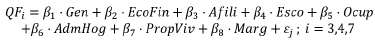 | Variables N=1.350 | QF3 | QF4 | QF7 | Gen | Eco Fin | Afili | Edad | Esco | Ocup | Adm Hog | Prop Viv | Marg |