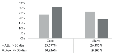 | Alto: > 30 días | 30,53 | 359,68 | 82,16 | 62,65 | 18,86 |
