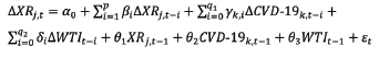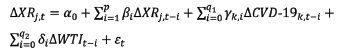 | ΔWTIt-1 | -0,005 | -4,053 | 0,033 | -0,209** | 0,006 |