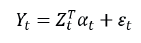 donde Yt es un escalar, Zt es un vector d-dimensional y εt~N(0,σt²) es el término de error, ruido blanco con media cero y varianza constante (σt²). La ecuación de observación conecta los datos observados Yt a un vector de estado d-dimensional latente _t. La segunda es la ecuación de estado, representada por (2).