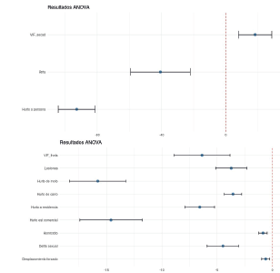 El análisis de varianza ANOVA reafirma los resultados obtenidos mediante la prueba de medias, y muestra diferencias significativas en los periodos evaluados para la mayoría de conductas. En la figura 2 se observa cómo la violencia intrafamiliar, según la información del Secad, presentó diferencias positivas, lo cual significa un incremento en los casos para esta conducta. Las otras conductas muestran un resultado negativo, lo que indica una disminución en la ocurrencia de estos hechos.