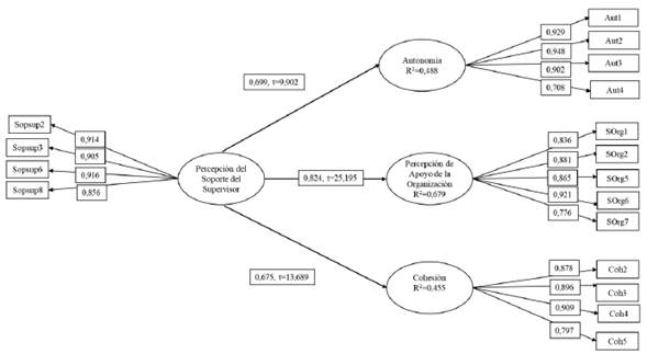 A continuación, en la figura 1, se expone el modelo conceptual de investigación en el cual se muestran las relaciones propuestas entre la percepción del apoyo que brinda el supervisor y la autonomía, la percepción del apoyo organizacional y la cohesión.