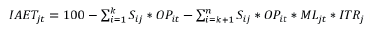 En tanto, para los meses t de mayo y junio, cuando la flexibilización del aislamiento fue asumiendo (de jure o de facto) diferentes intensidades y velocidades según el contexto regional, el IAET de cada región j se obtiene de la siguiente forma: