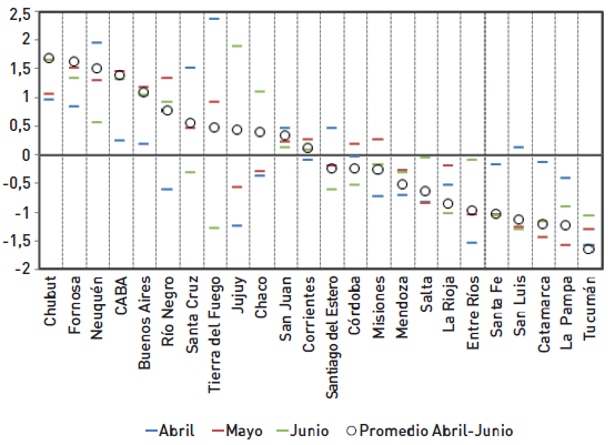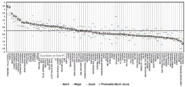 Figura 2 IAET a nivel provincial: valores mensuales estandarizados (ordenados por promedio abril-junio)