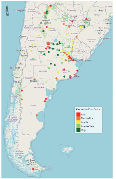Desde la perspectiva territorial, los resultados indican que la Patagonia habría sido, potencialmente, una de las áreas más afectadas, junto con la ciudad y provincia de Buenos Aires y algunas provincias norteñas. En cambio, otras provincias, y sus respectivas AEL, de base agrícola o agroindustrial, como Entre Ríos, La Pampa, Tucumán o Santa Fe, se habrían visto menos afectadas. El análisis a nivel de AEL permite además contemplar la heterogeneidad al interior de provincias grandes y diversas, como Buenos Aires y Córdoba, e incluso en otras más pequeñas, como Misiones o Salta.