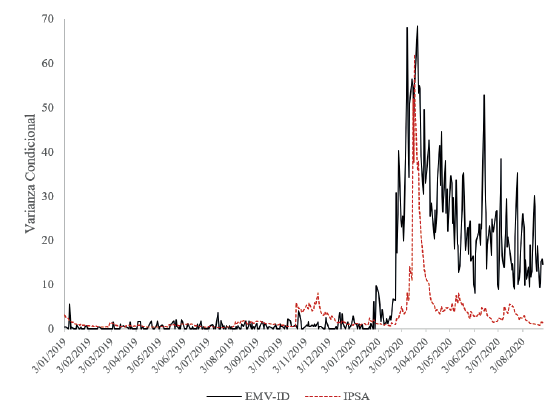 Los aportes de este trabajo son, primero, aplicar por primera vez el índice EMV-ID para estudiar la relación con la volatilidad del índice IPSA de Chile, es decir, es un estudio de serie de tiempo específico, a diferencia de la mayoría de los trabajos que han analizado el impacto de la COVID-19 sobre mercados accionarios con métodos de corte transversal y agrupados. Segundo, aportar información relevante para uno de los mercados financieros emergentes que se caracteriza por su apertura al comercio internacional. Con esto, se sientan las bases para estudios futuros de los mercados latinoamericanos, que permitan conocer qué variables de incertidumbre globales pudieran afectarlos de manera significativa sobre sus respectivas volatilidades.