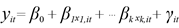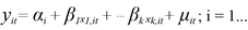 Onde: y it é a variável dependente. No caso do estudo em questão é o valor de empresa, sendo i = as empresas e t = o tempo, e α i a interceptação representando a heterogeneidade não-observável que varia entre as unidades, mas que é constante no tempo. Os x s re-presentam as variáveis independentes; os betas (β) os coeficientes associados e μ it representa o erro que tem um componente individual e temporal, além de ruído branco.
