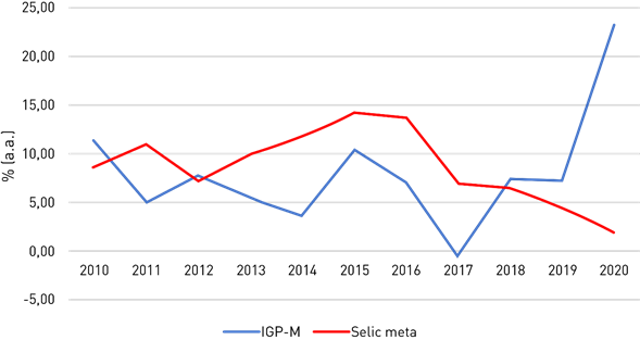 Figura 2 Comportamento do Índice Geral de Preços do Mercado (IGP-M) e Selic meta.