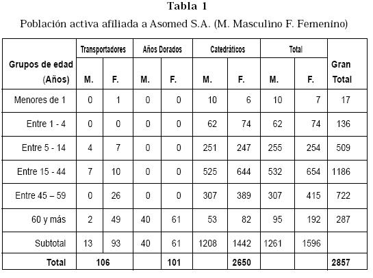 Al finalizar todos los estudios y comparar los tipos de programas existentes con lo que estaba siendo llevado a cabo en la Institución, se pudo definir que la población activa está compuesta por tres grupos de afiliados: Transportadores S.A., Años Dorados S. A., Catedráticos S.A., cada uno con su núcleo de edades diversas y características especiales.